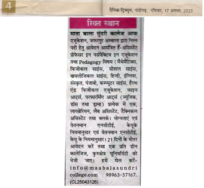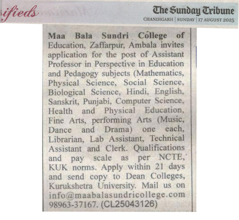 Currently at Maa Bala Sundri College of Education there are few vacant posts.